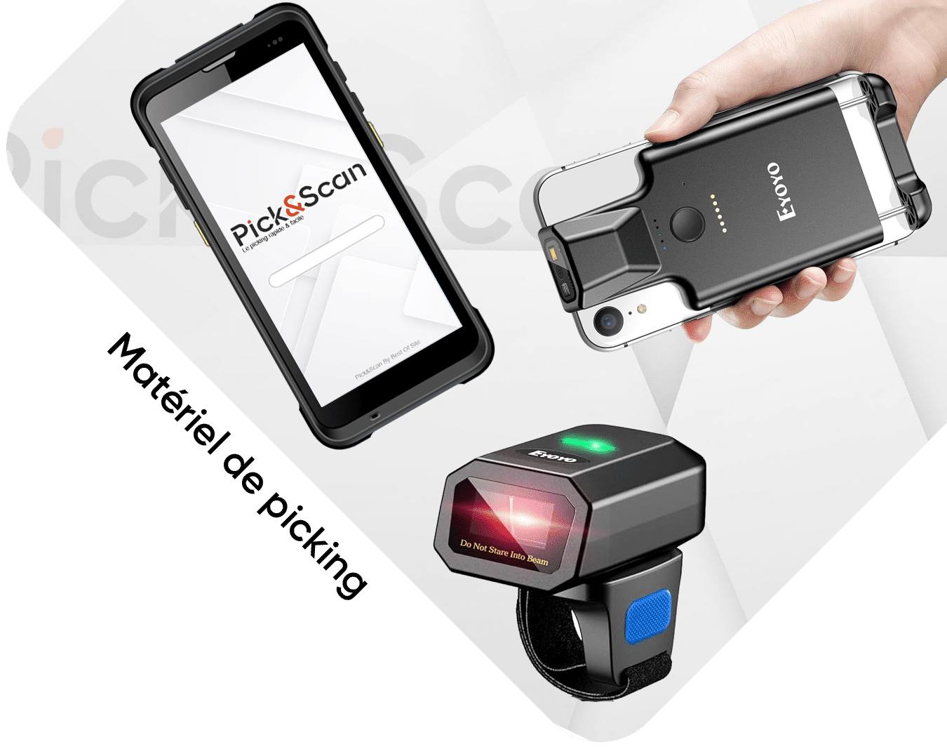 Notre logiciel de préparation de commandes et l’application Pick&Scan fonctionnent avec la plupart des matériels disponibles sur le web ou en magasin spécialisé.